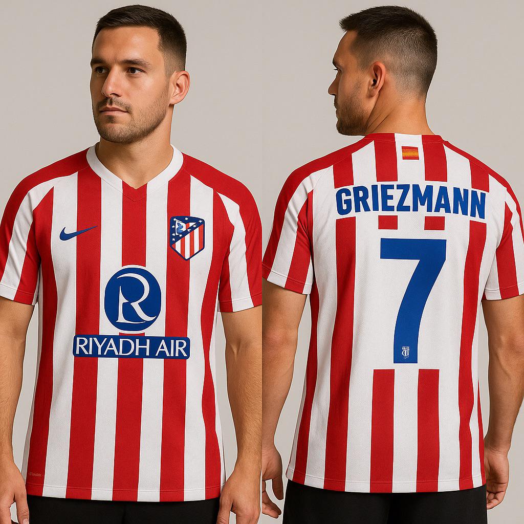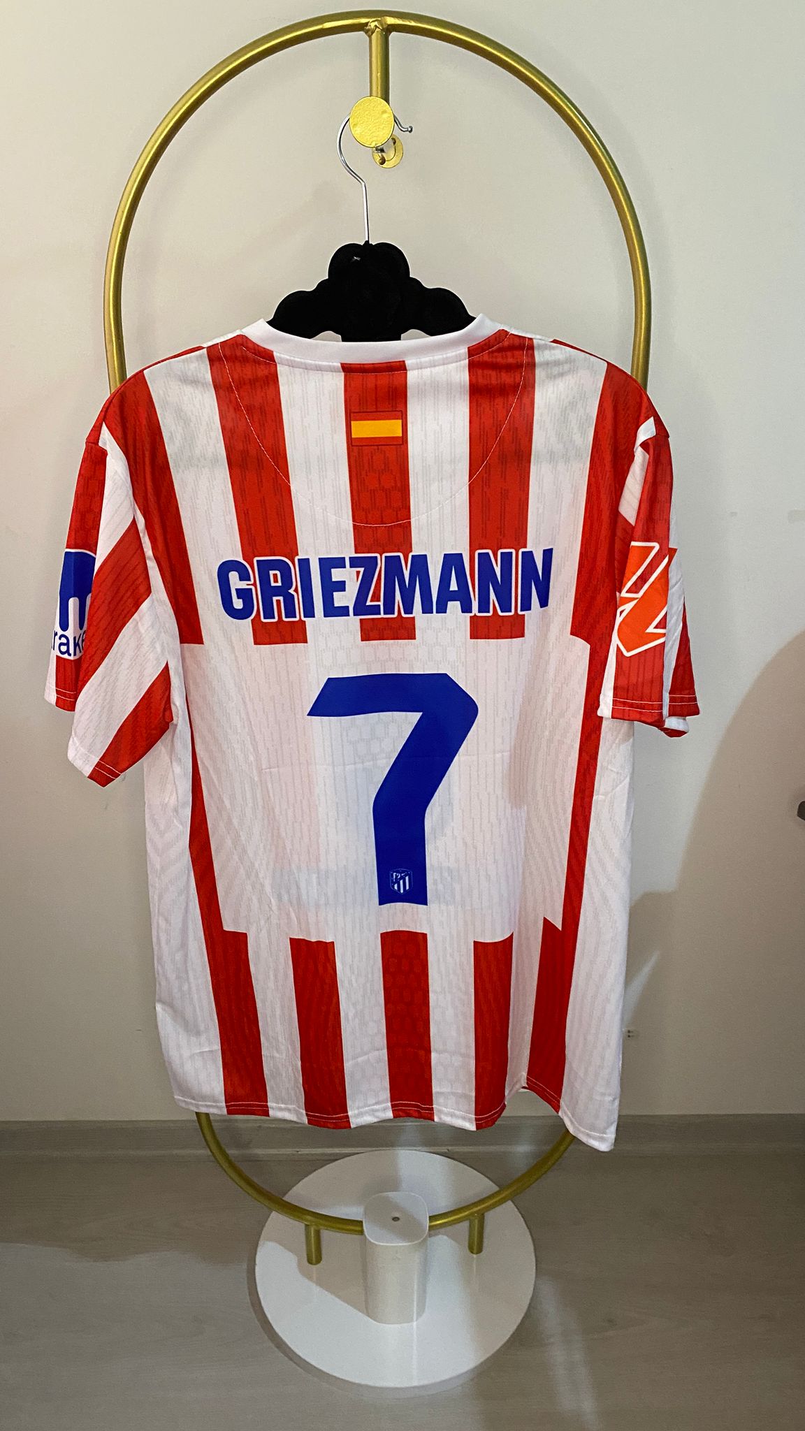 - Özgün Tasarım: Tişört, Atletico Madrid’in ikonik kırmızı-beyaz renkleri ile tasarlanmıştır. Ön kısmında Antoine Griezmann’ın ismi ve 7 numarası şık bir şekilde işlenmiştir.