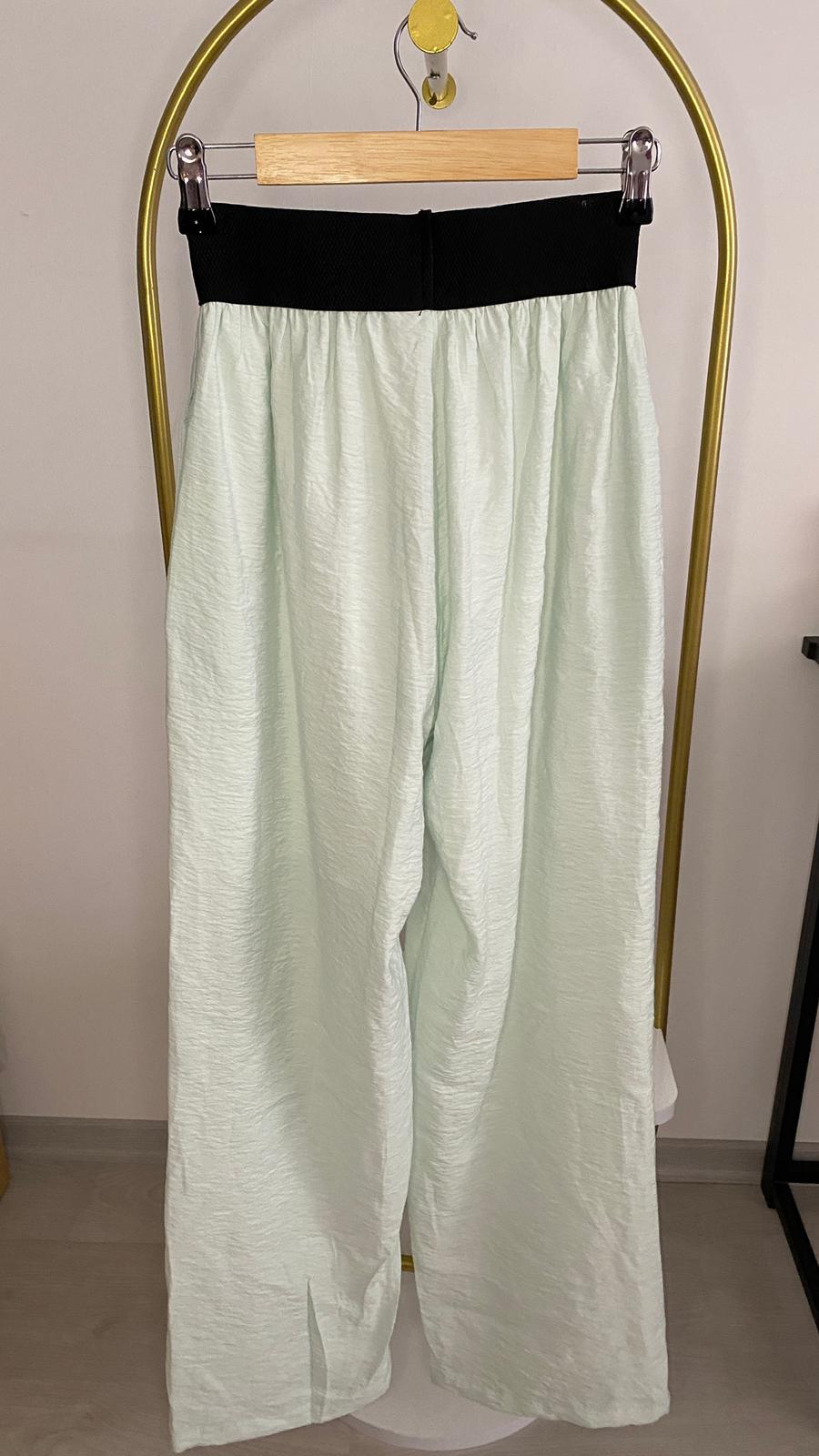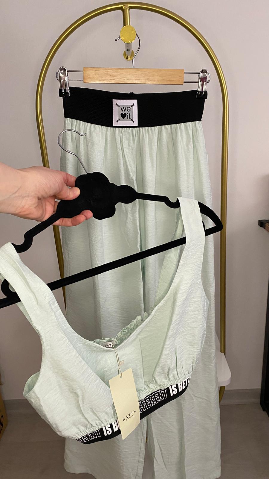 Bu eşsiz takım, batik desenleriyle özgün bir tarza sahiptir. Bralet üst kısmı, geniş bir askı yapısına sahip olup, vücut hatlarınızı zarif bir şekilde vurgular. Yüksek bel pantolonlar ise uzun bacak görünümünü destekler ve belinizi ince gösterirken, rahat bir oturuş sunar. Mint yeşili rengin yanı sıra, batik desen detayları, her bir parçanın benzersiz olmasını sağlar, bu da sizi kalabalıktan ayırır.