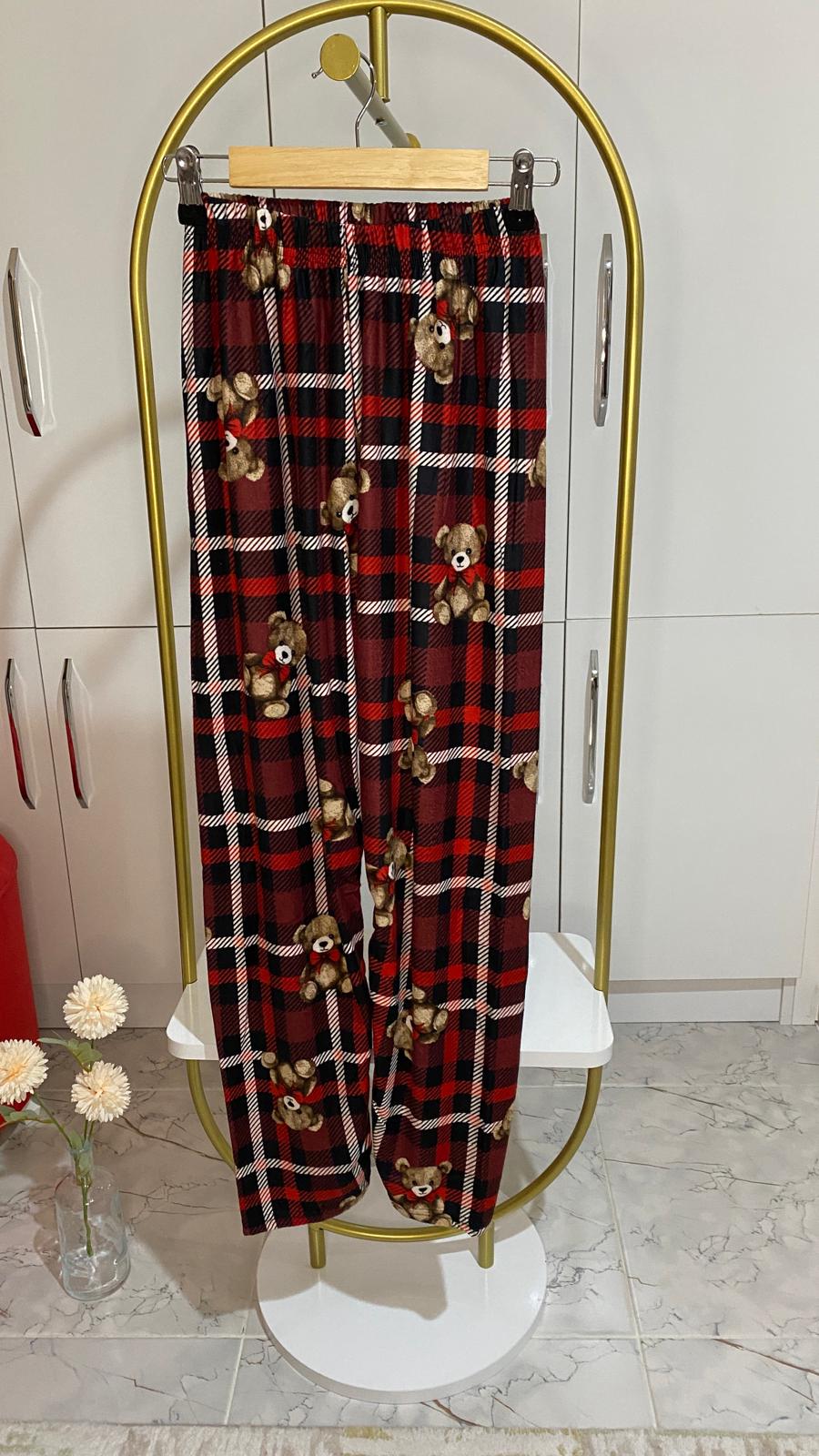 Pijamanın alt kısmı, esnek bel bandı ile günlük hareketlerinizi kısıtlamadan özgürce hareket etmeyi sağlar. Rahat bir kesime sahip olan alt pantolon, vücut hatlarını nazikçe sararak, hem konforlu hem de estetik bir görünüm sunar. Pijamanın alt kısmında yer alan şık detaylar, takımın bütünlüğünü artırırken, şıklığınızı da ön plana çıkarır.