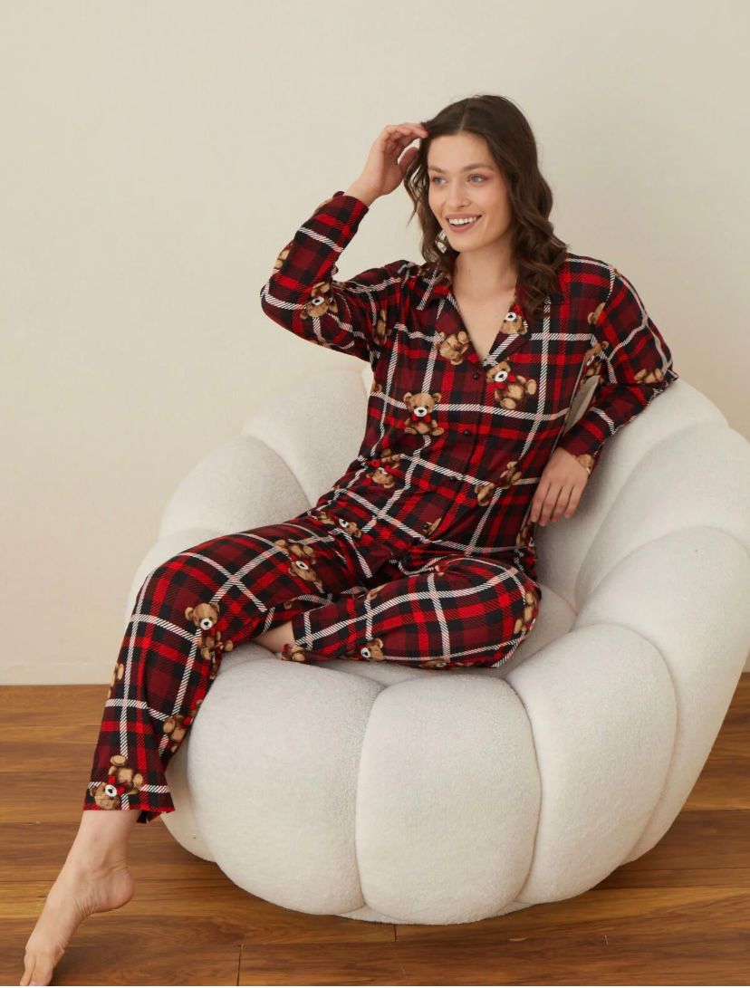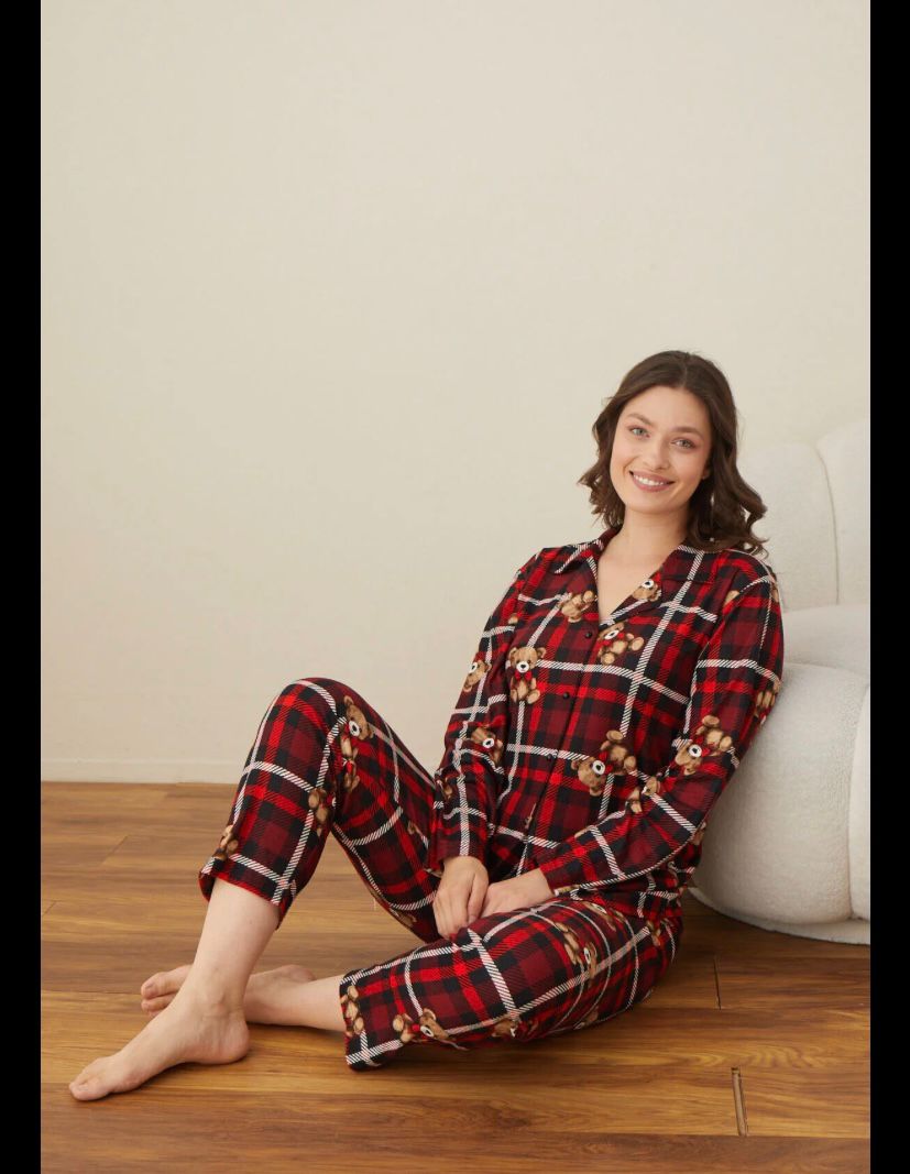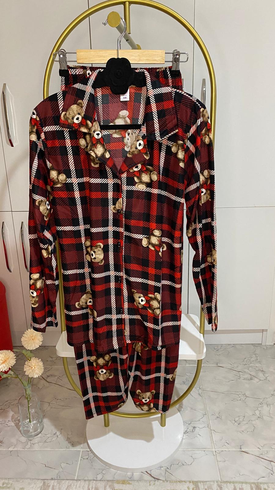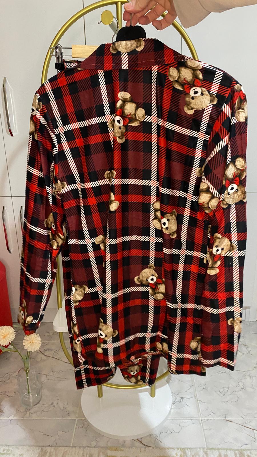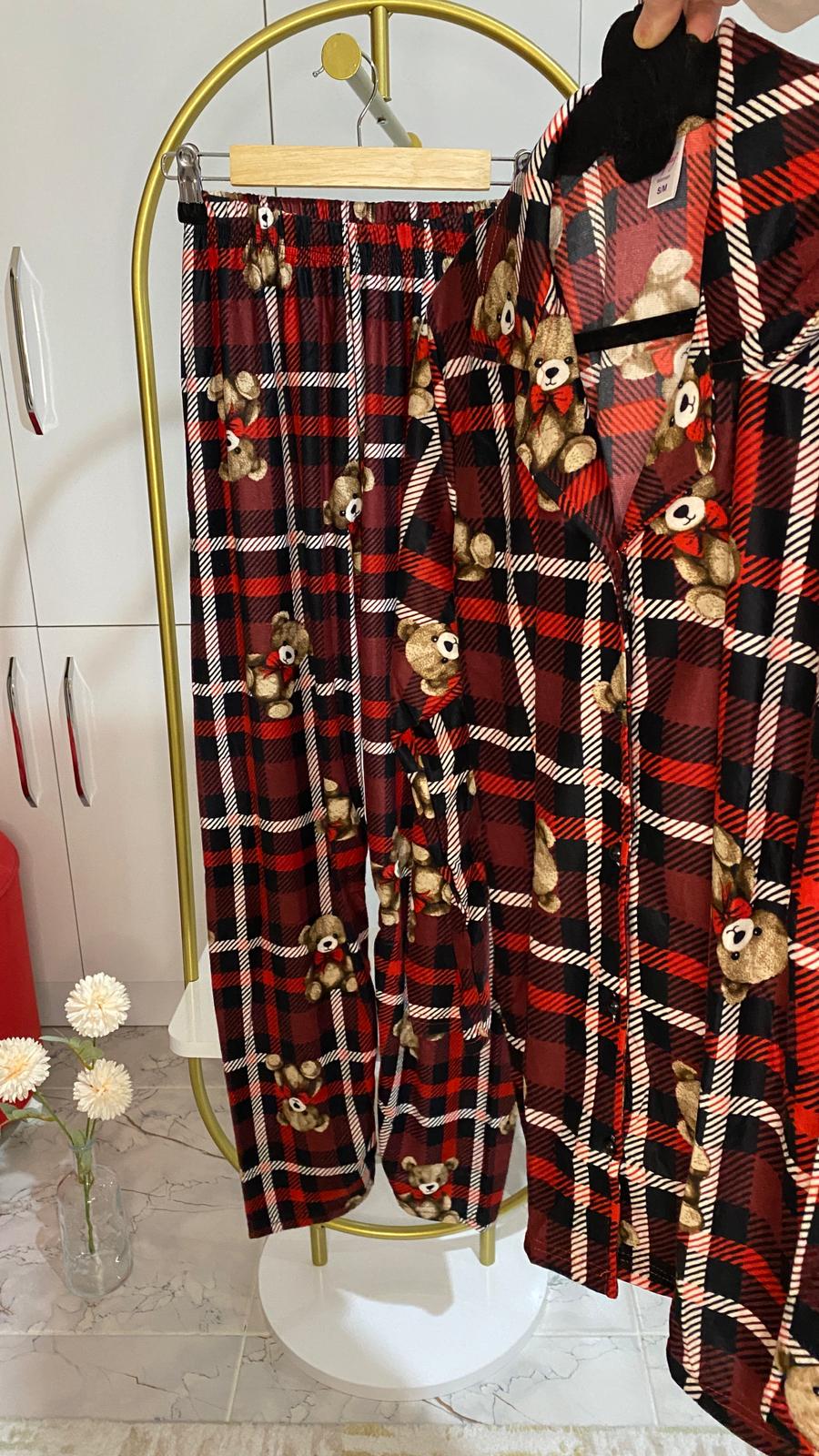 BOYRAZ SÜET DÜĞMELİ UZUN KOL PİJAMA TK