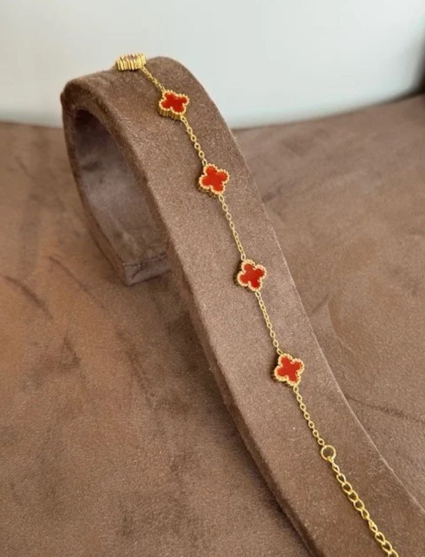 Bilekliğin tasarımında kullanılan Cleef deseni, minimalist estetiği ile birlikte zarif bir hava katmaktadır. Her bir detayın özenle işlendiği bu bileklik, özel günlerinizde ya da günlük kullanımlarınızda stilinizi ön plana çıkarmak için idealdir.