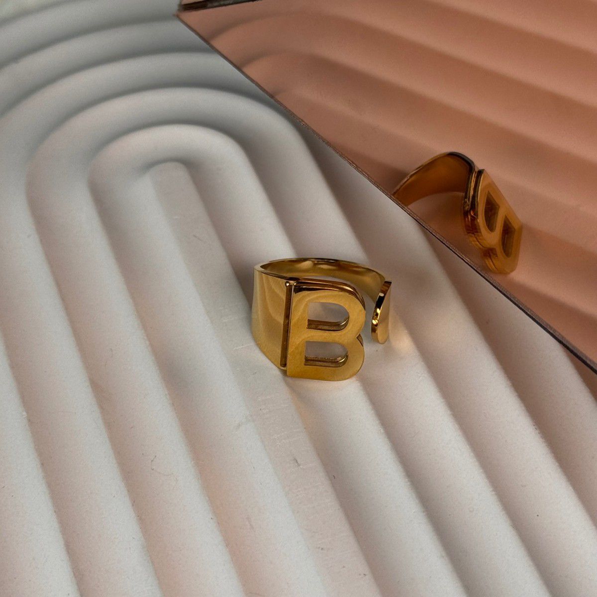 Harflı Ayarlanabilir Gold Renk Çelik Yüzük, zarafeti ve şıklığı bir arada sunarken, kişisel bir dokunuşla da anlam katıyor. "B" harfine sahip olan bu yüzük, hem kendiniz hem de sevdikleriniz için harika bir tercihtir. Şimdi sipariş vererek bu eşsiz tasarımı parmaklarınızda taşıyabilirsiniz!