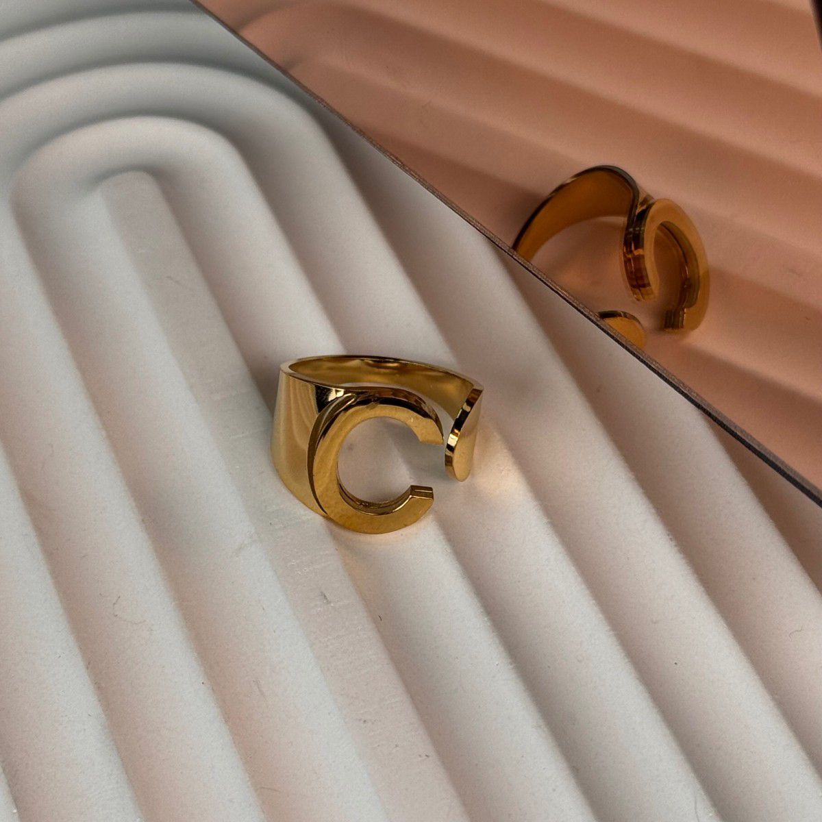 HARFLİ AYARLANABİLİR GOLD RENK ÇELİK YÜZÜK - C HARFİ, stilinize birçok farklı yönden katkı sağlayacak, şıklığı ve zarafeti bir araya getiren harika bir aksesuardır. Kendi tarzınızı yansıtmak ya da sevdiklerinize anlam dolu bir hediye vermek için bu eşsiz yüzüğü tercih edebilirsiniz. Kendi koleksiyonunuza dahil etmek ya da sevdikleriniz için mükemmel bir sürpriz yapmak için hemen sipariş verin!