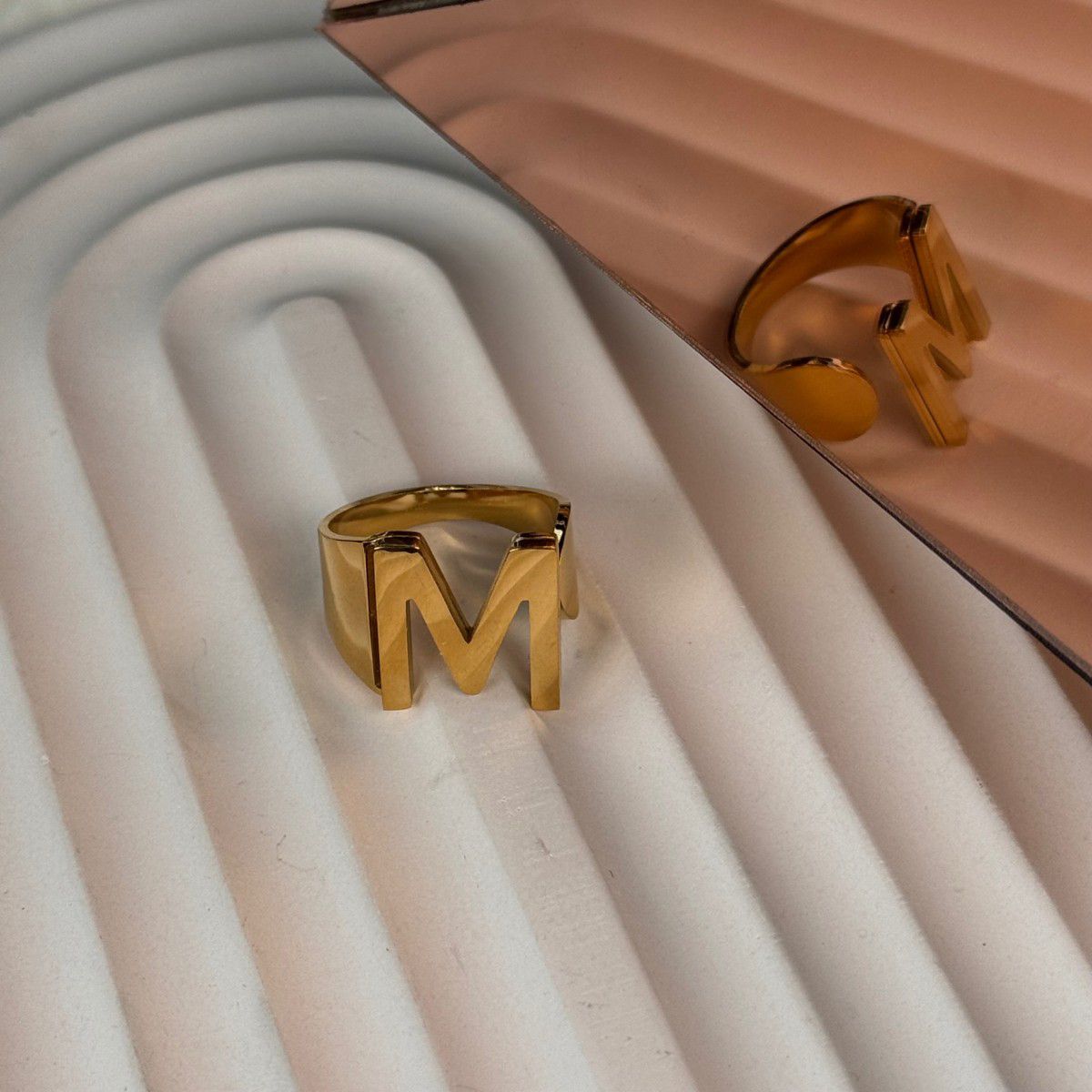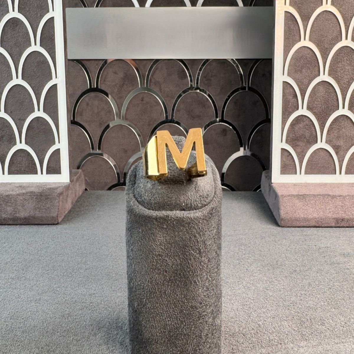 Yüzüğümüzde kullanılan kaliteli çelik malzeme, hem sağlamlığı hem de dayanıklılığı ile ön plana çıkmaktadır. Gold renk kaplama, yüzüğe lüks bir görünüm kazandırırken, günlük kullanıma uygun yapısıyla her ortamda sizi şıklığınızdan ödün vermeden temsil eder. Üzerinde yer alan "M" harfi, kişiselliği ön plana çıkararak, onu yalnızca bir takı olmaktan öteye taşır.