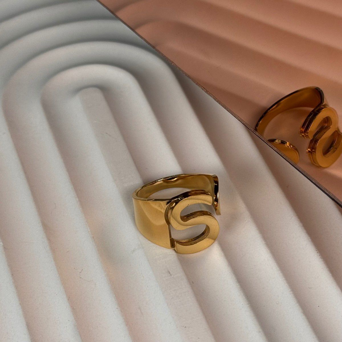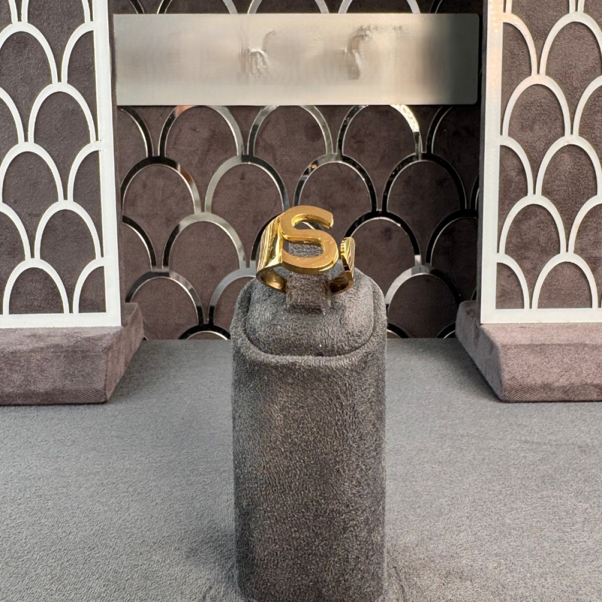 HARFLİ AYARLANABİLİR GOLD RENK ÇELİK YÜZÜK - S HARFİ