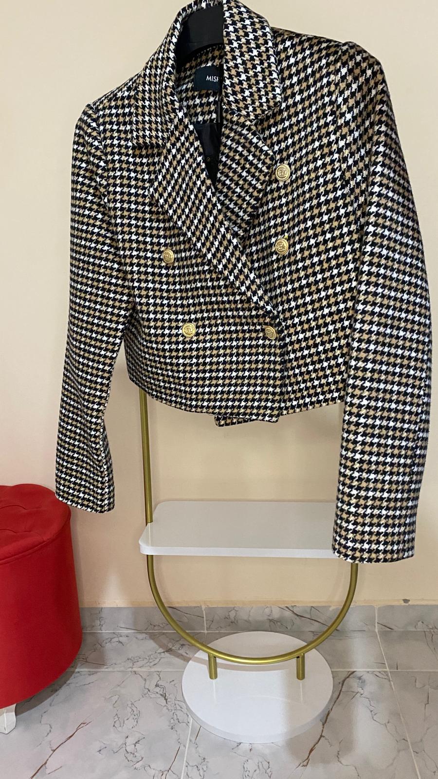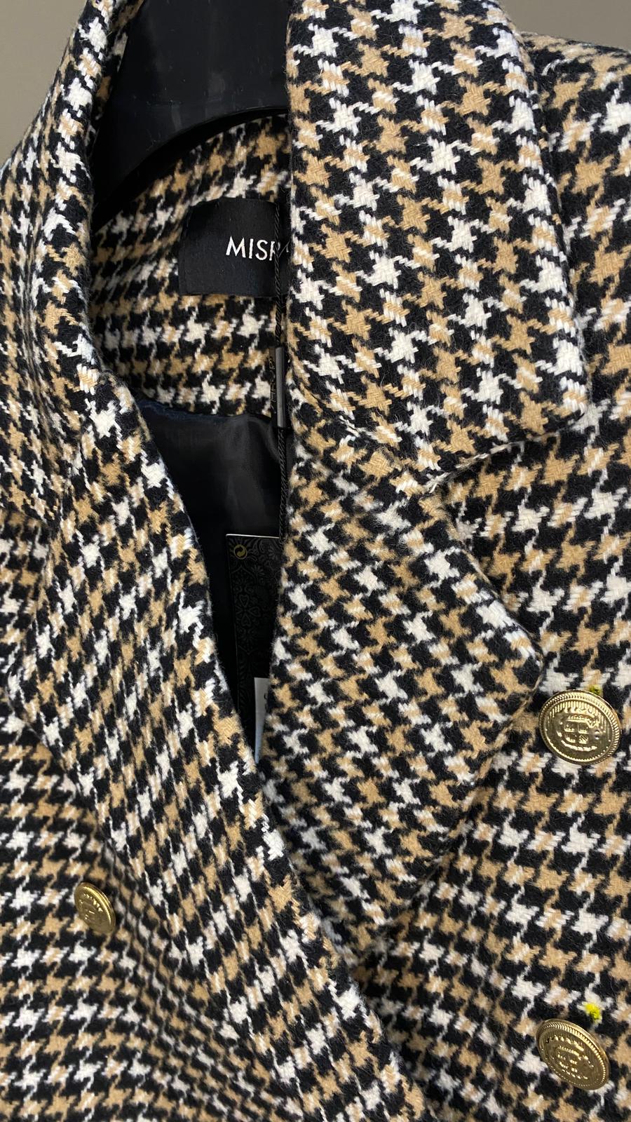 Kruvaze Yaka Kazayağı Desen Krop Ceket - KAHVERENGİ