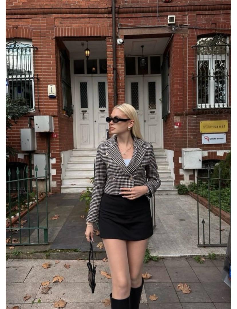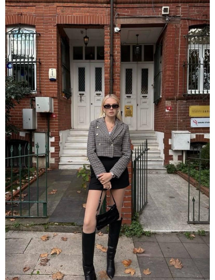 Bu krop ceket, iş hayatında şık bir görünüm elde etmek isteyen profesyonellere, sosyal etkinliklerde dikkat çekmek isteyenlere ve günlük hayatta şıklığını ön planda tutanlara hitap ediyor. Üzerinize giydiğiniz bir bluz ya da tişört ile kombinleyerek, hem resmi hem de gündelik bir look elde edebilirsiniz.