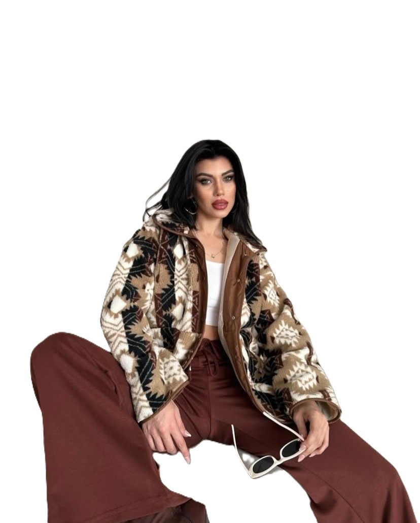 MERCİYAN Peluş Mont, estetik bir görünüme sahip olmakla birlikte, etnik desenleriyle de dikkat çekiyor. Geleneksel motiflerin modern bir yorumuyla harmanlanması, bu montu sıradan bir dış giyim parçası olmaktan çıkarıyor. Premium kalitedeki peluş kumaşı, uzun ömürlü kullanım sağlarken, aynı zamanda sıcak bir tutuş sunar. Montun hafif yapısı sayesinde, hareket kabiliyetinizi kısıtlamadan gün boyu rahatça giyebilirsiniz.