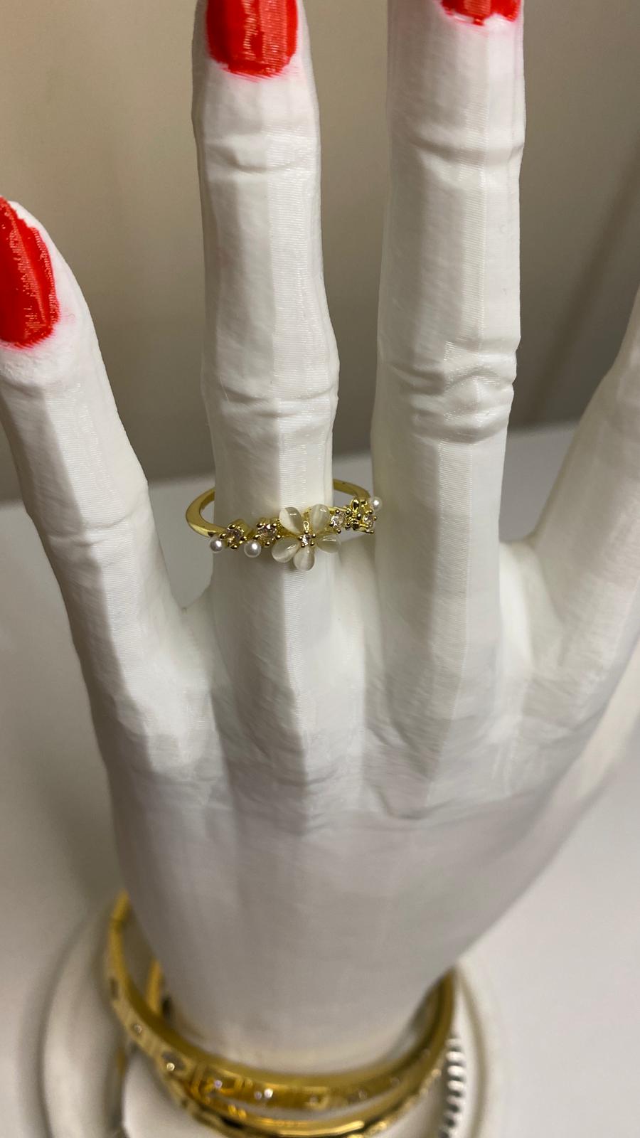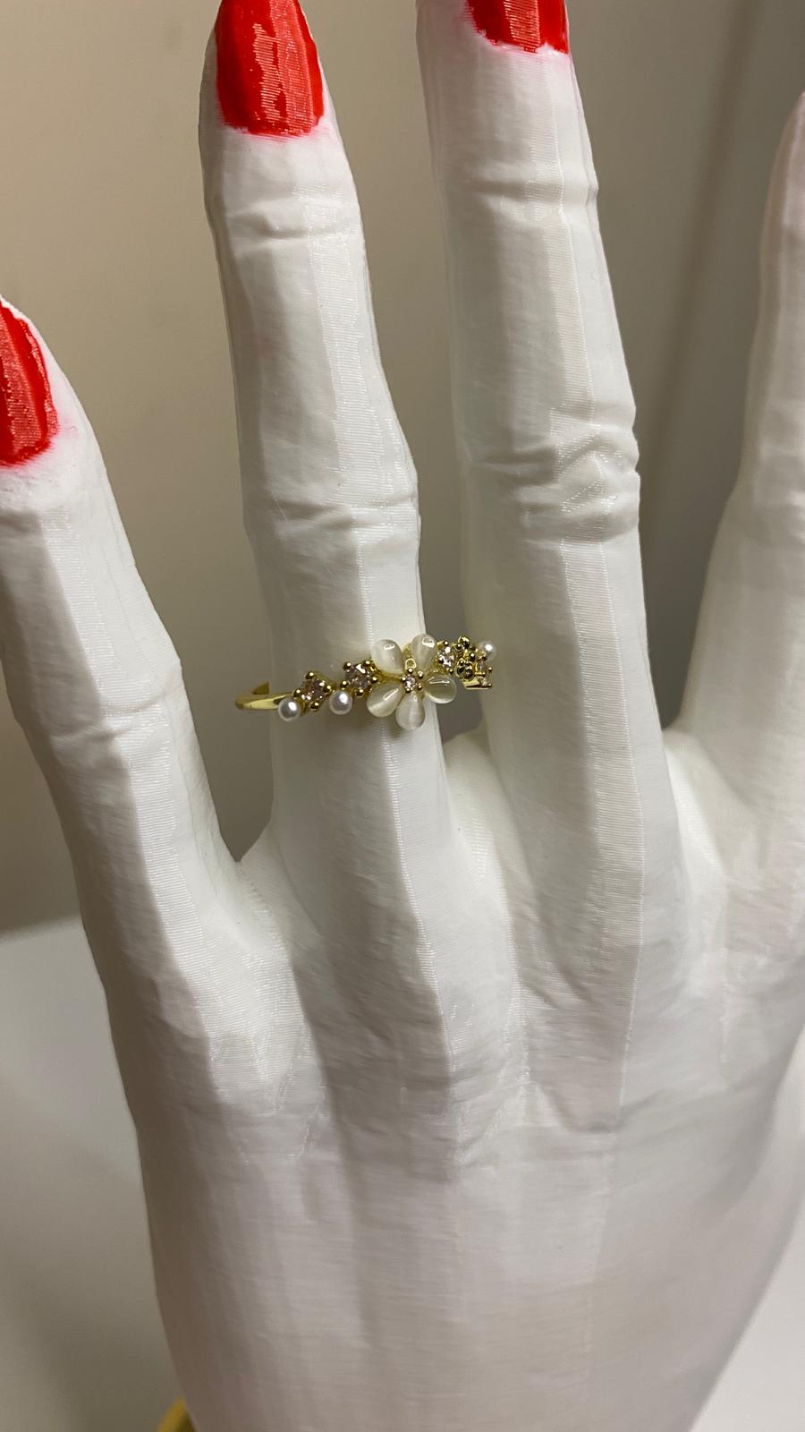 MİNİMAL PAPATYA DETAYLI PİRİNÇ İNCİLİ ZİRKON TAŞLI TASARIM GOLD ÇELİK AYARLAMALI