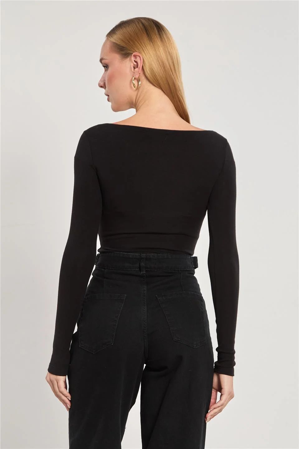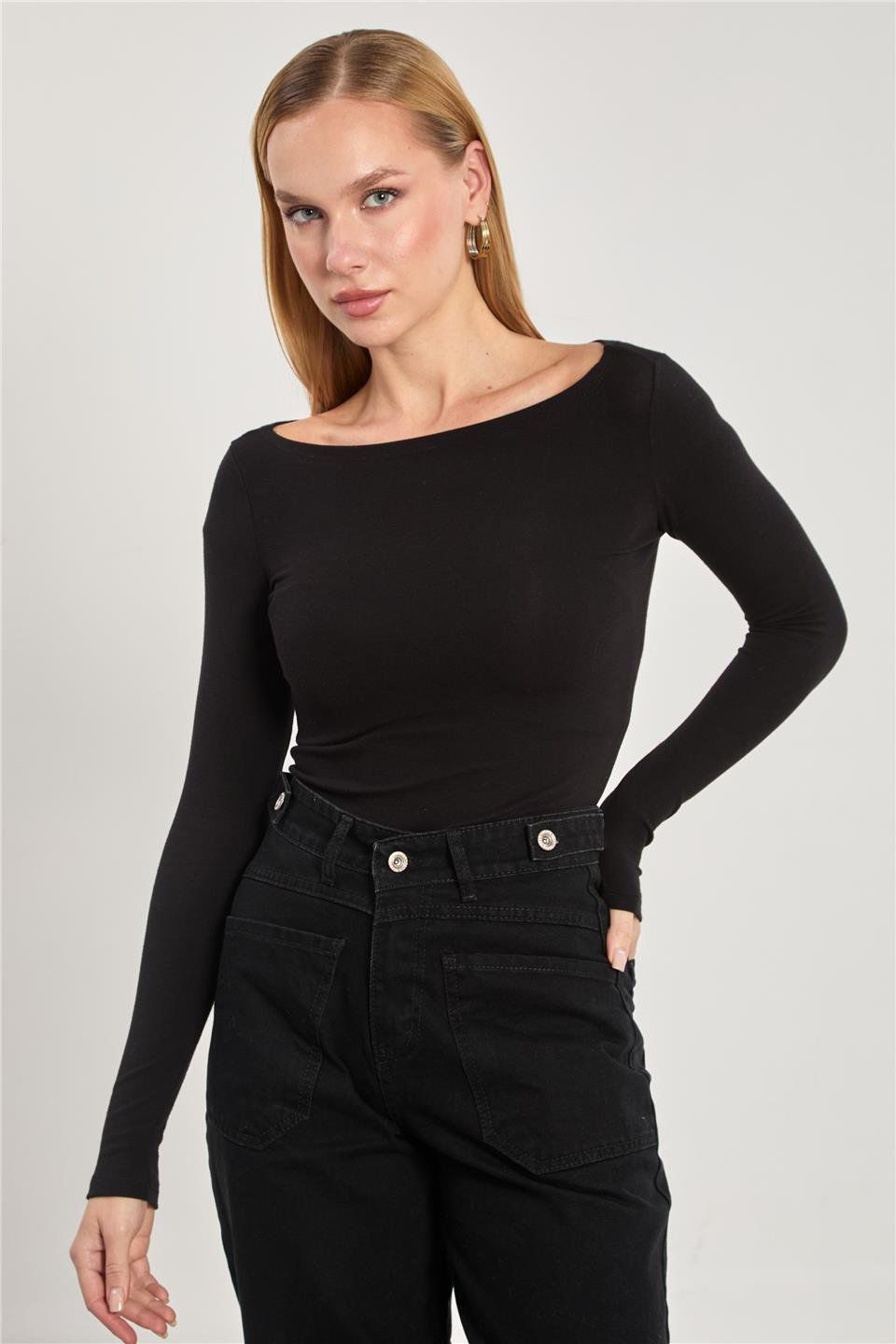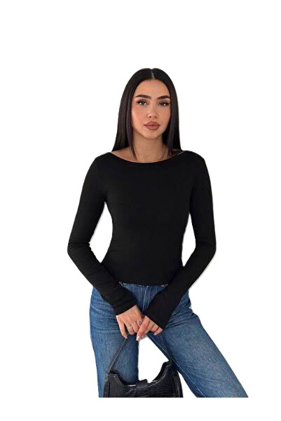 Modal kumaş KAYIK YAKA Uzun Kollu Parmak Arası Geçiş Detaylı BADİ OVAL YAKA BODY