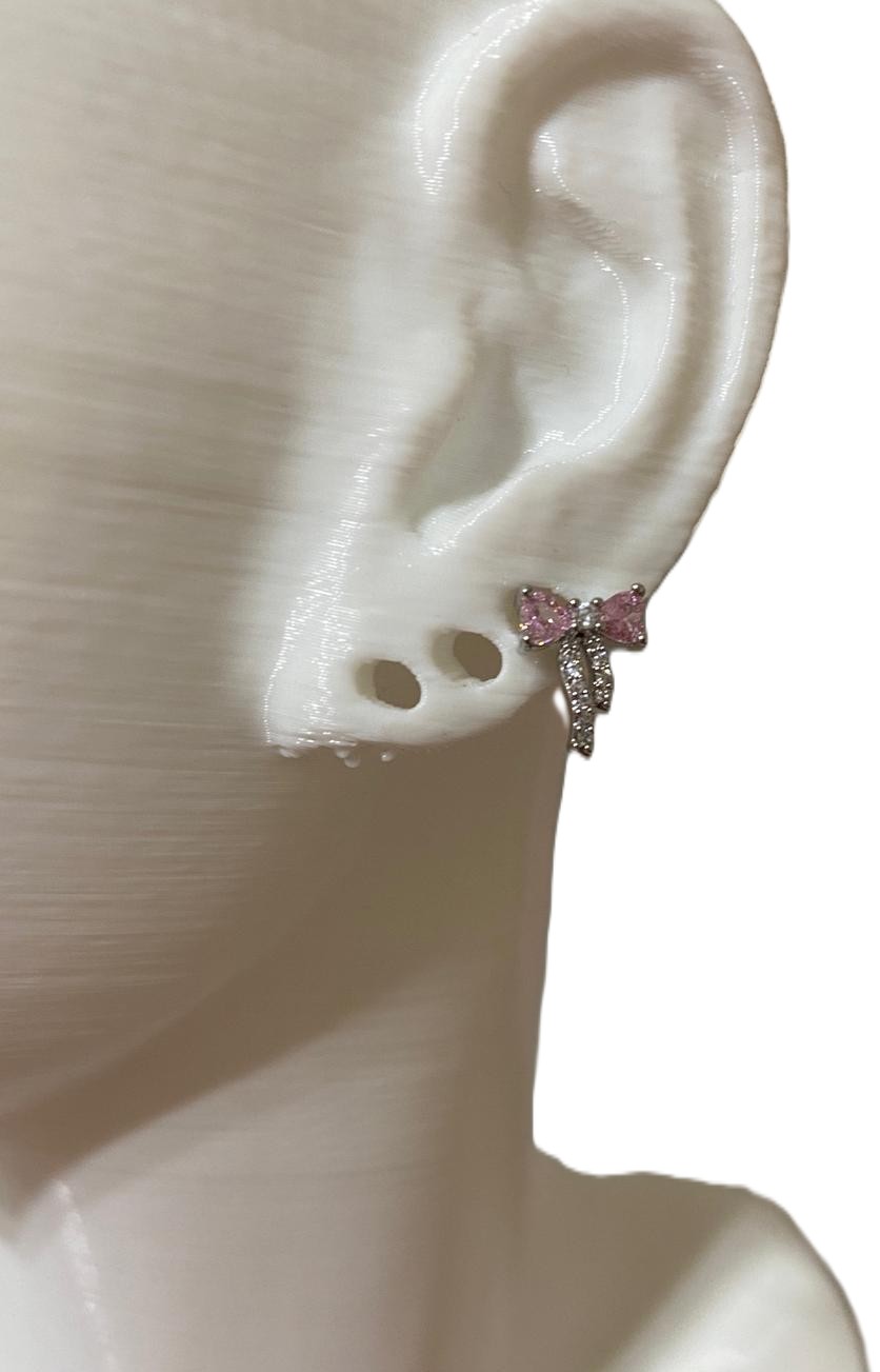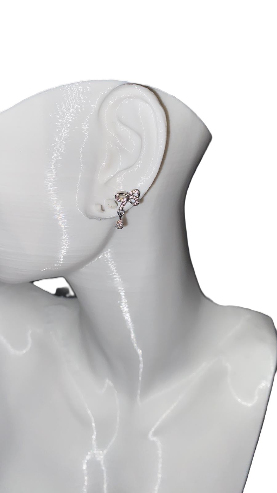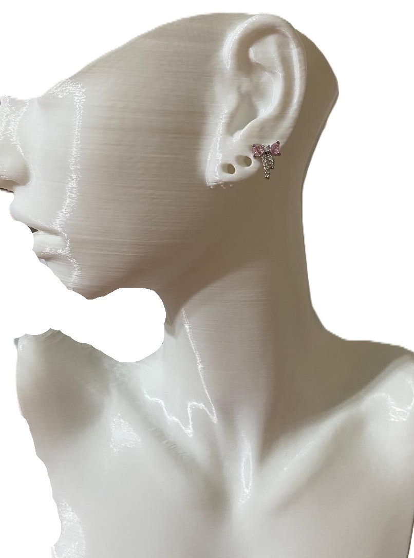 PEMBE TAŞLI KURDELA MİNİMAL TASARIM TRAGUS PEARSİNG HELİX KIKIRDAK KÜPE ÇELİK