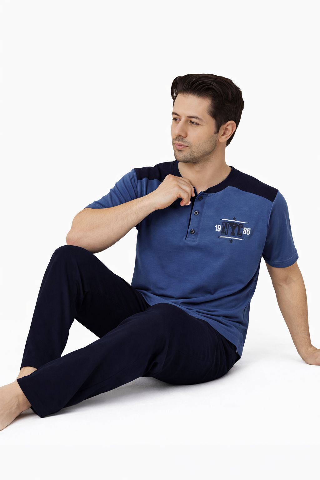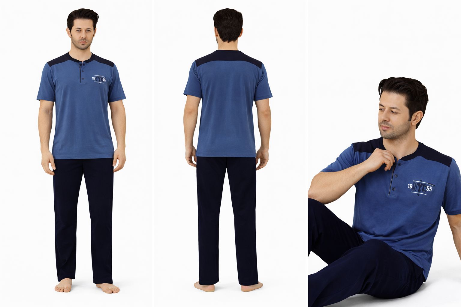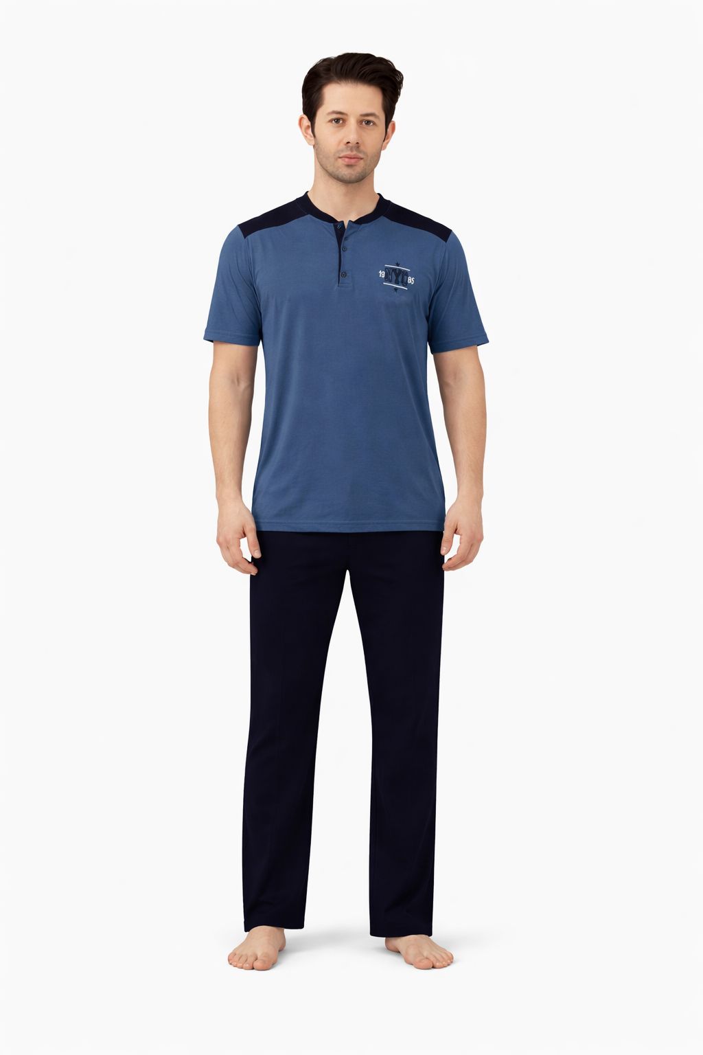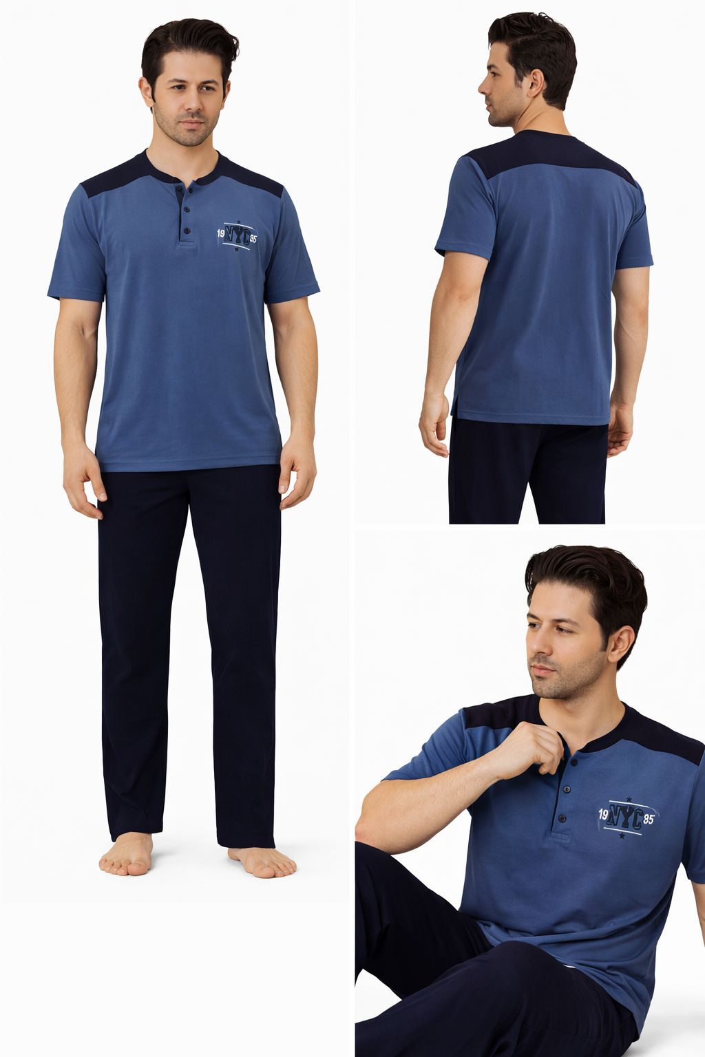 SUDE Erkek Pijama Takımı Kısa Kollu Alt Uzun - A300-05 ve A301-1173-1, modern tasarımı ve yüksek kaliteli pamuk yapısıyla her erkeğin gardırobunda yer alması gereken bir üründür. Konforunuzu önceliklendiren ve şıklığınızı tamamlayan bu pijama takımı ile evde geçirdiğiniz zamanları daha keyifli hale getirin. Şimdi rahatlığın ve şıklığın tadını çıkarma zamanı!