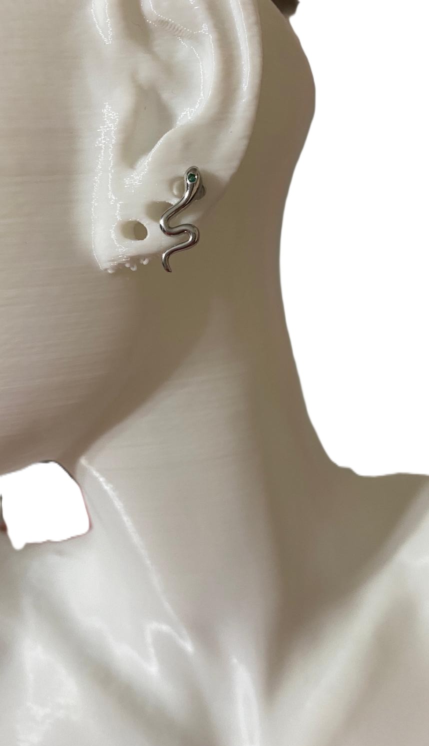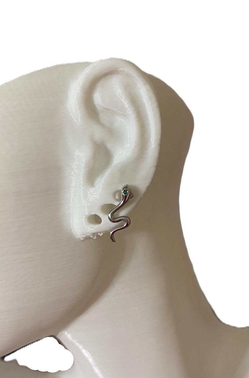 TAŞLI YILAN TASARIM KIKIRDAK TRAGUS HELİX PEARSİNG KÜPE GÜMÜŞ