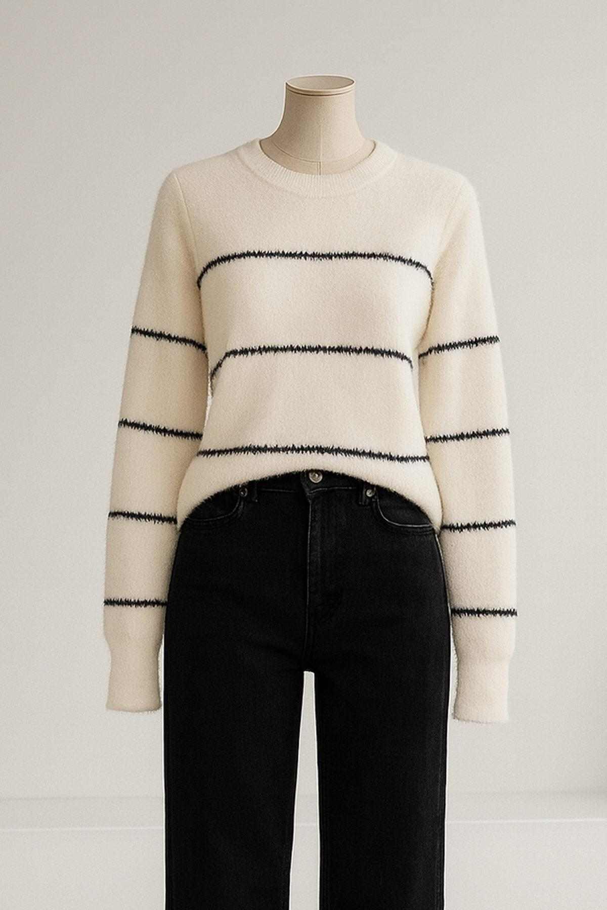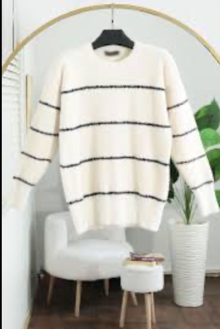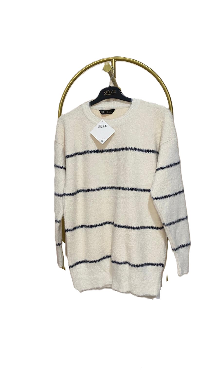 YUMOŞ ÇİZGİLİ KAZAK EKRU PREMİUM KALİTE